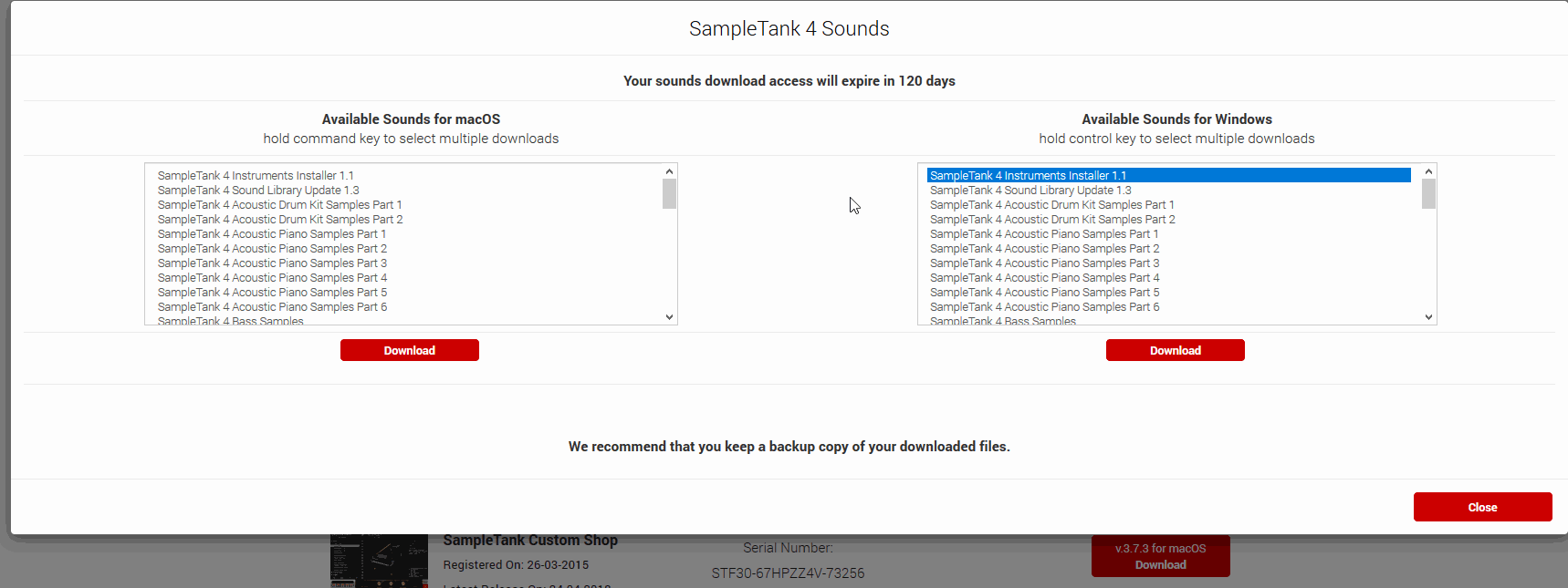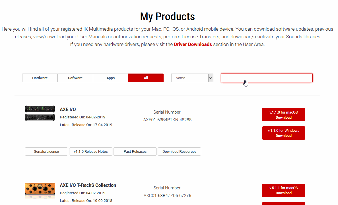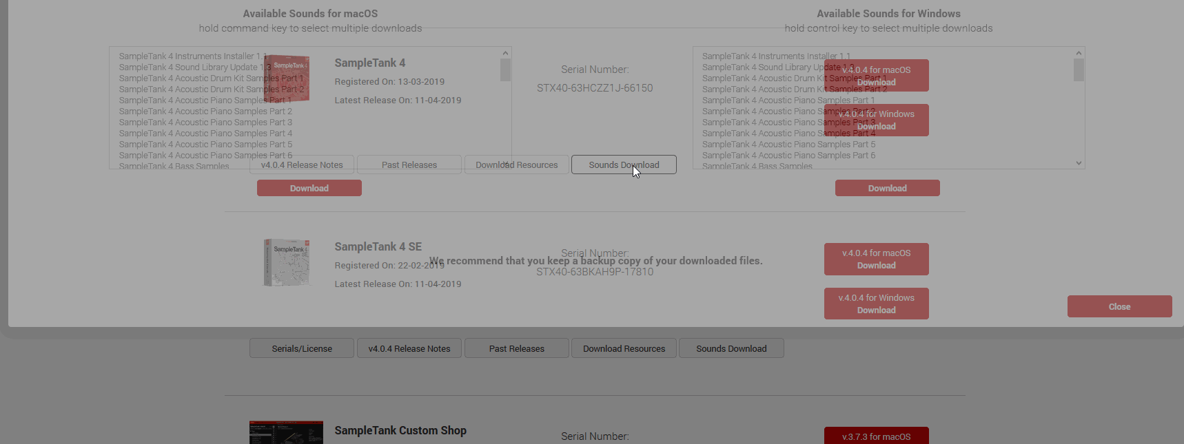Important: While some products like AmpliTube, T-RackS, or MODO BASS include Software only downloads. Any SampleTank 4 related sounds, Miroslav Philharmonik 2, and Syntronik collections will also offer additional downloads under the Sounds category in the IK Product Manager.